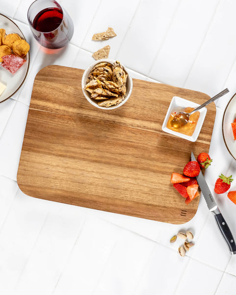 Whether you're chopping up veggies for a quick snack or really putting it to use for a five-star meal, the acacia Cutting Board is ready for whatever you throw at it.