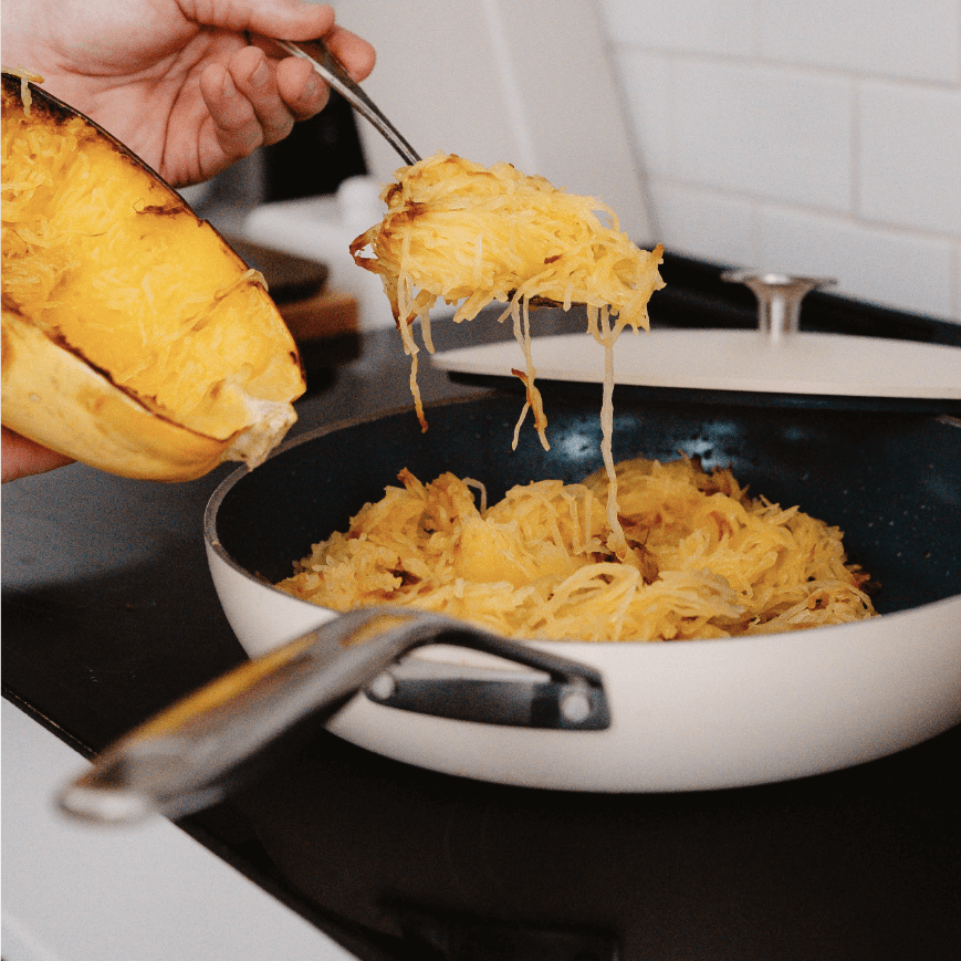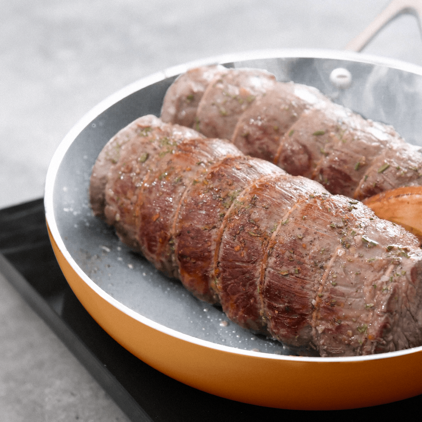 The ceramic non-stick, non-toxic pan that does it all. Replaces 9 pieces of traditional cookware.
