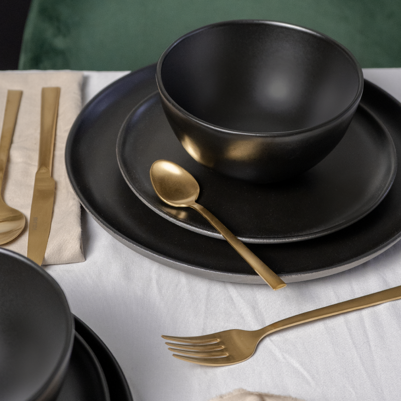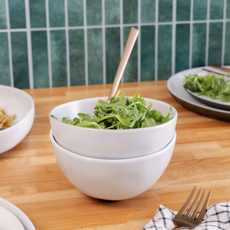 The perfect ceramic stoneware pieces to serve and enjoy all your culinary creations. These beautiful, organically shaped pieces have a hand-made feel and semi-matte glaze finish. Whether you're drinking your morning coffee, snacking on the couch, or serving family dinner, this set has everything you need.