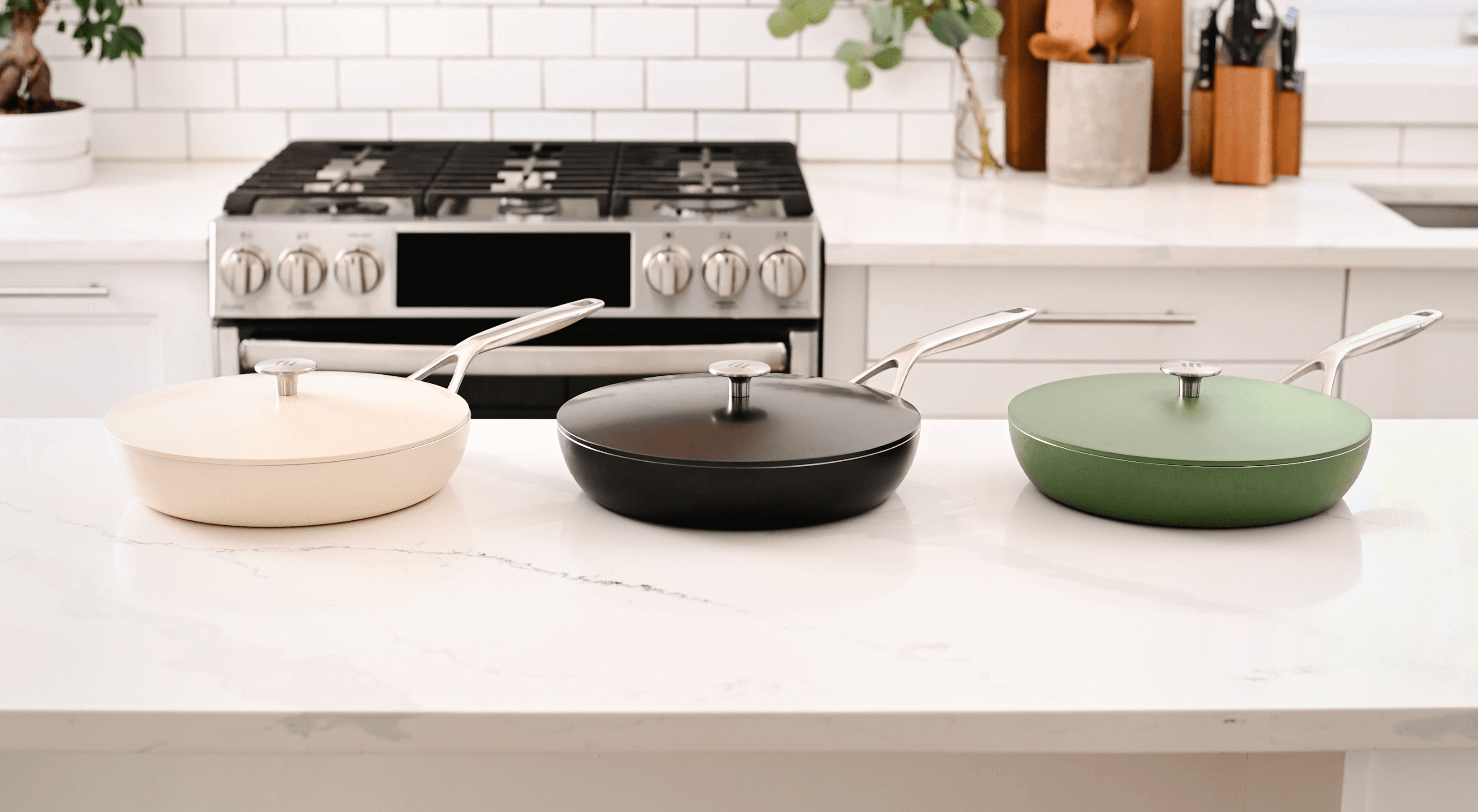 The ceramic non-stick, non-toxic pan that does it all. Replaces 9 pieces of traditional cookware.
