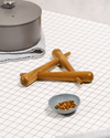 8" Acacia wood trivet: three wooden pieces interlock together to create this unique and beautiful triangular trivet.